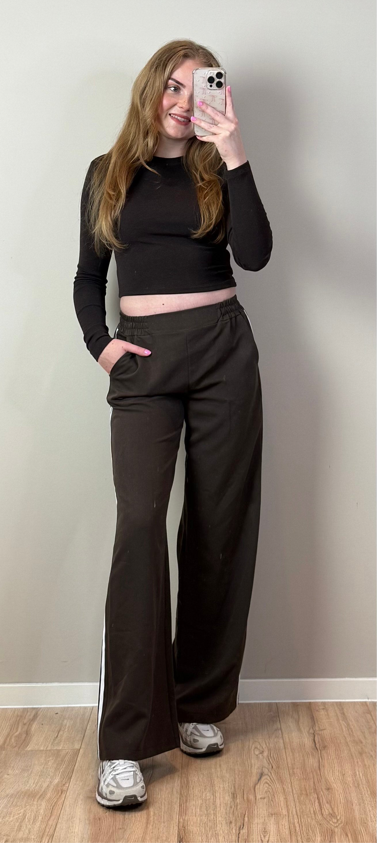 Model is 175 cm met een binnenbeenlengte van 87 cm (valt als 185 cm).